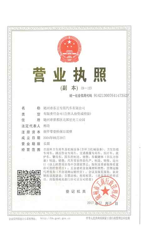 隨州市東正專(zhuān)用汽車(chē)有限公司地處馳名中外的中華始祖炎帝神農(nóng)故里,編鐘之鄉(xiāng)汽車(chē)名城——隨州市。本廠是國(guó)家定點(diǎn)改裝廠,是東風(fēng)汽車(chē)公司改裝基地,是一汽貿(mào)易公司網(wǎng)點(diǎn)單位,有九大生產(chǎn)車(chē)間,所有產(chǎn)品都是國(guó)家《公告》有光盤(pán)的產(chǎn)品,全部產(chǎn)品都符合新法規(guī),滿(mǎn)足新標(biāo)準(zhǔn)。