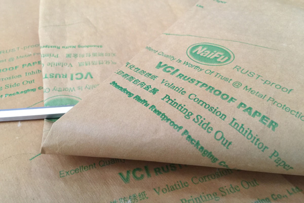 4、包裝過程---將含有緩蝕劑的面朝向金屬包裝,不覆膜防銹紙可作為金屬產品間墊層隔材使用,以免其他材質阻隔材料含S、CL化學成分,影響防銹效果